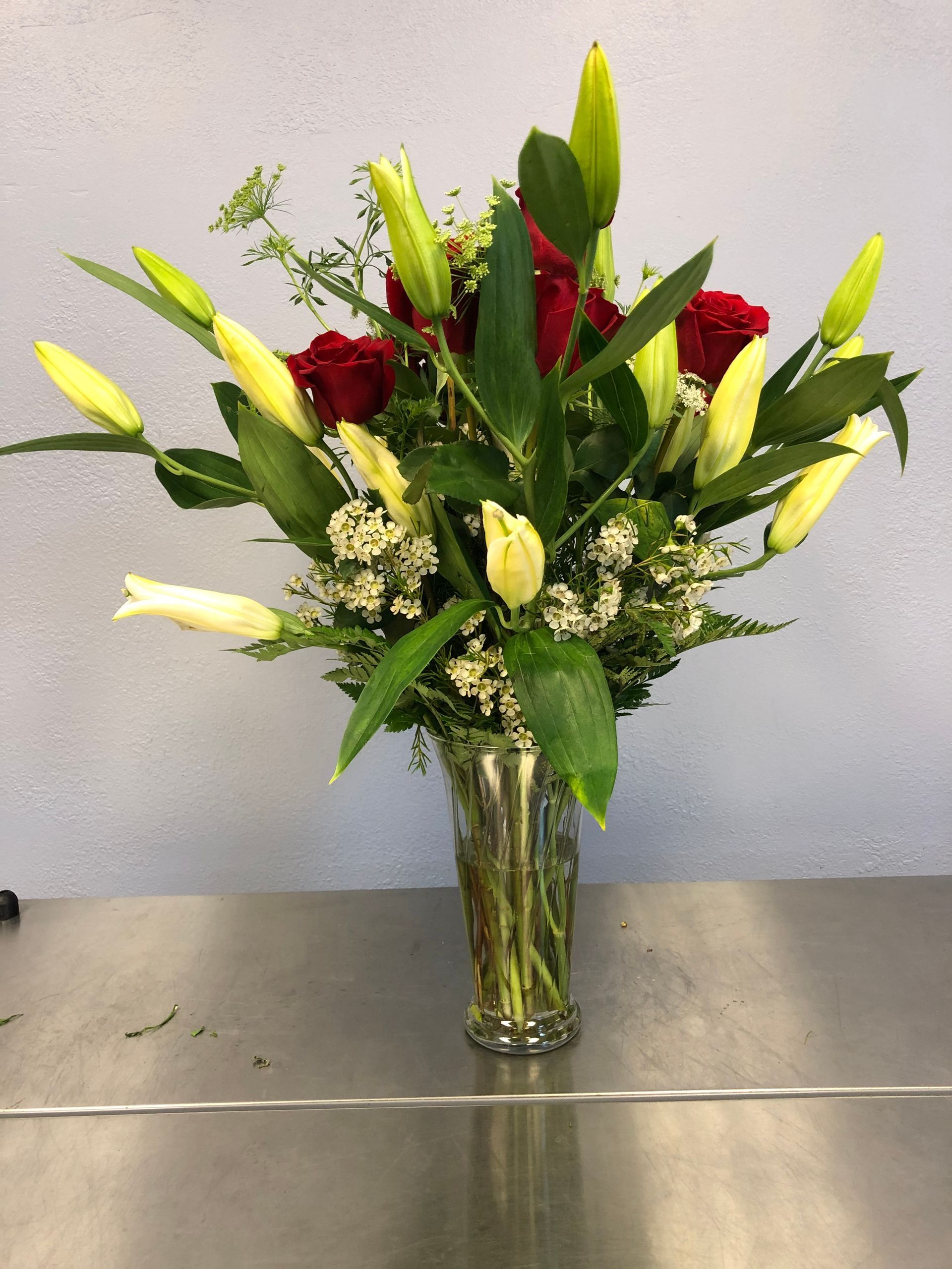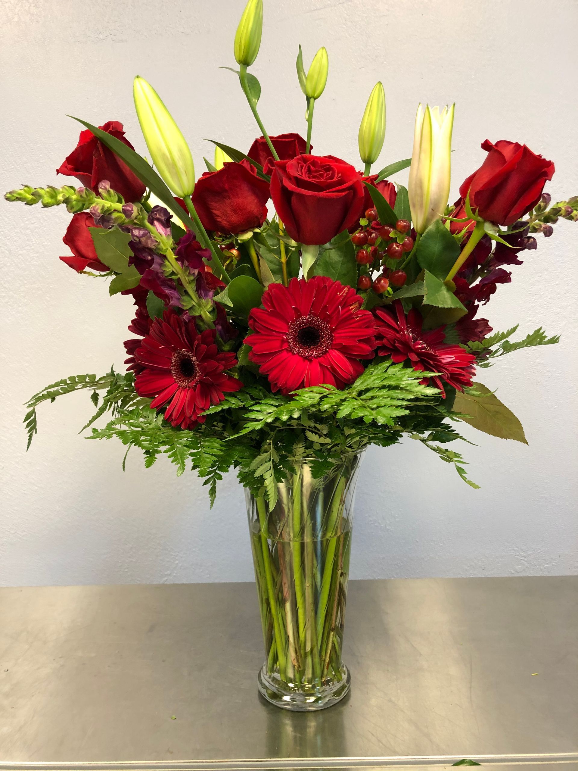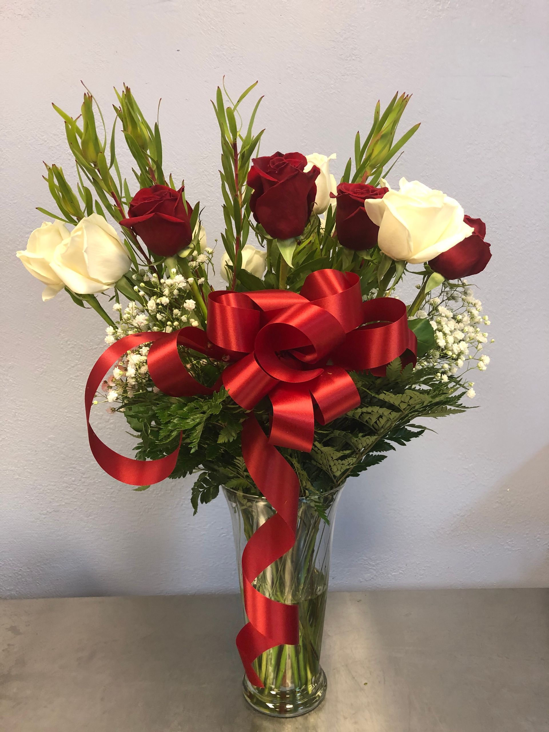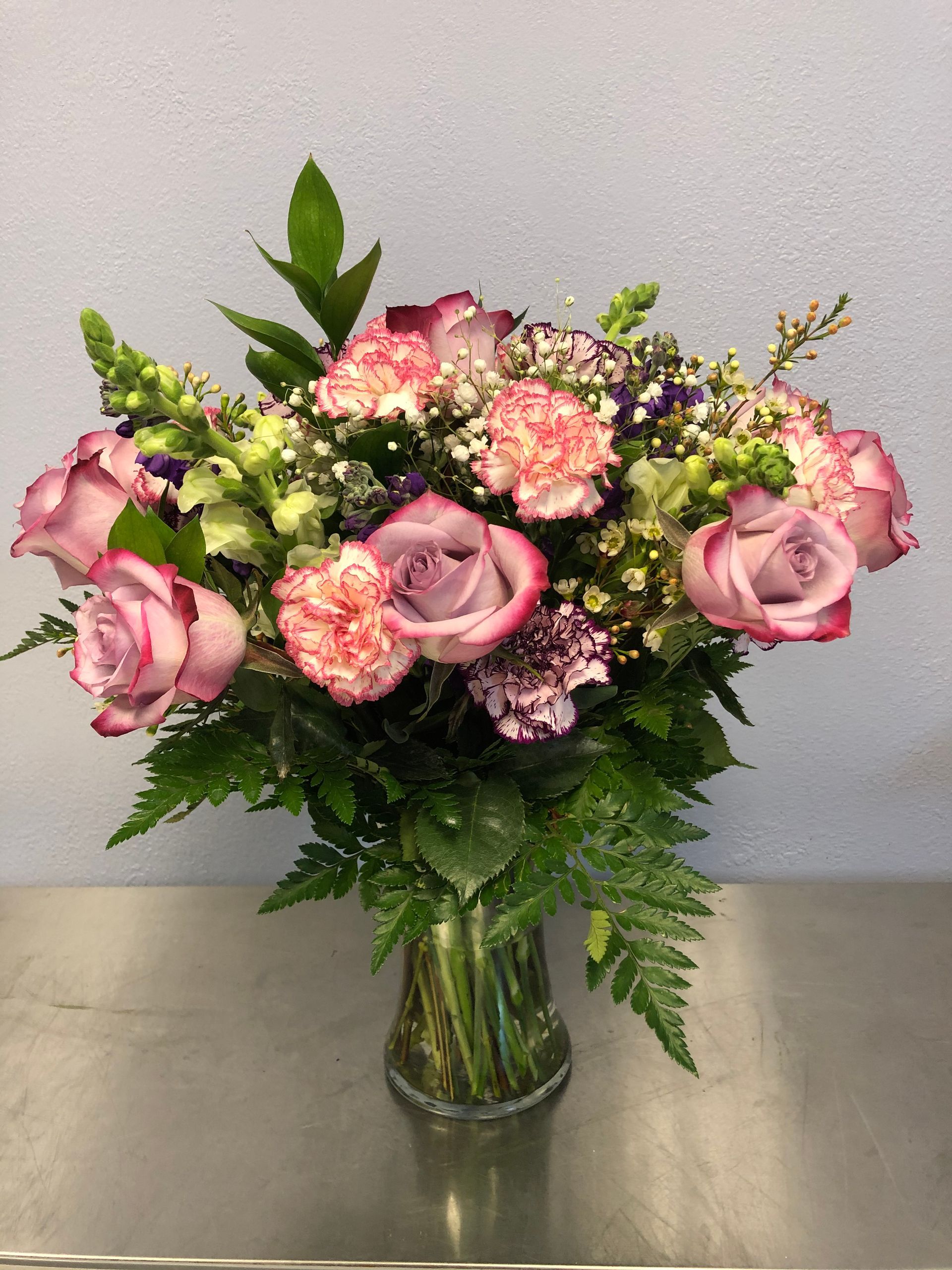 One dozen mixed roses in a crystal vase. Rose color & vase are special order.