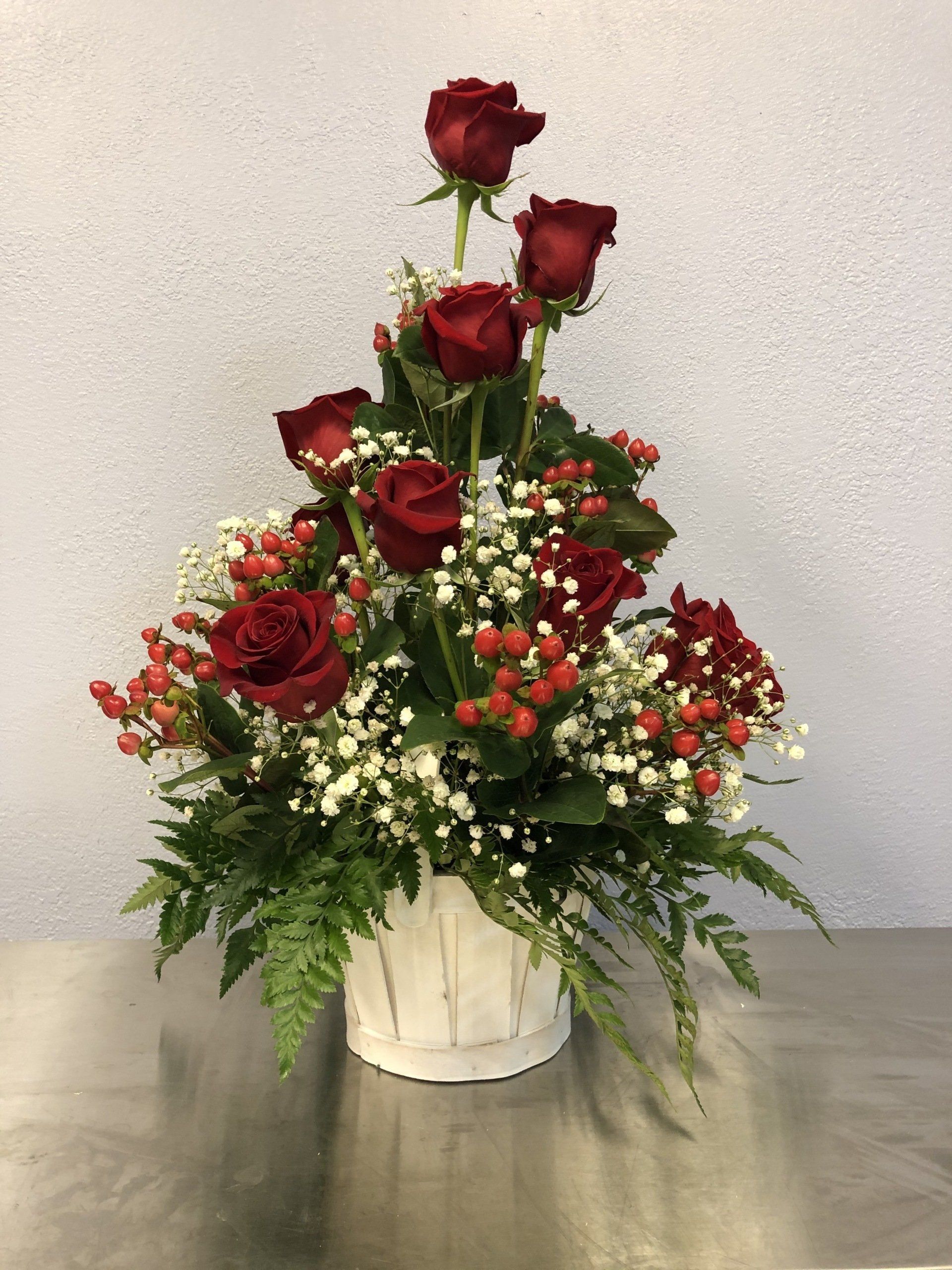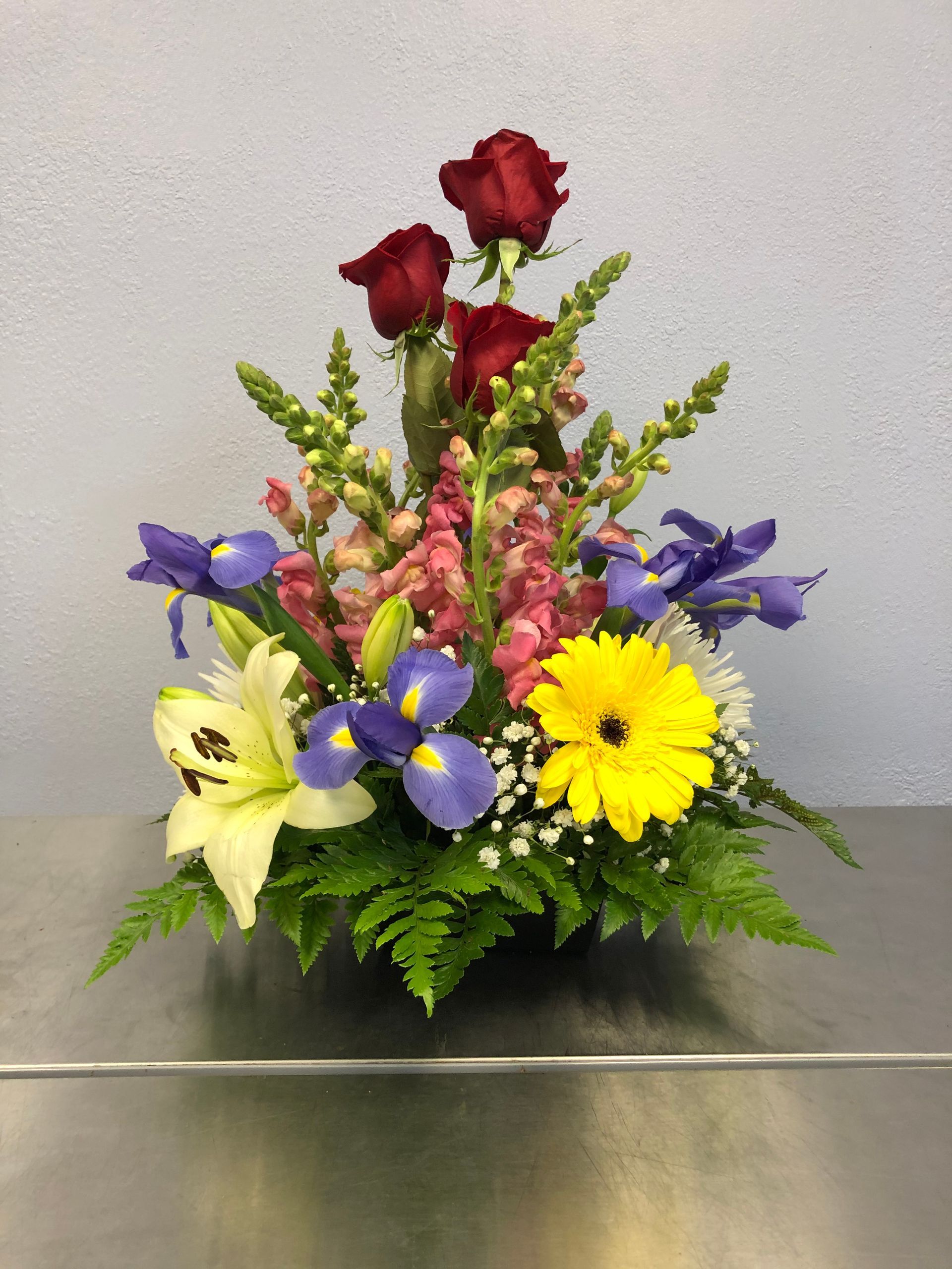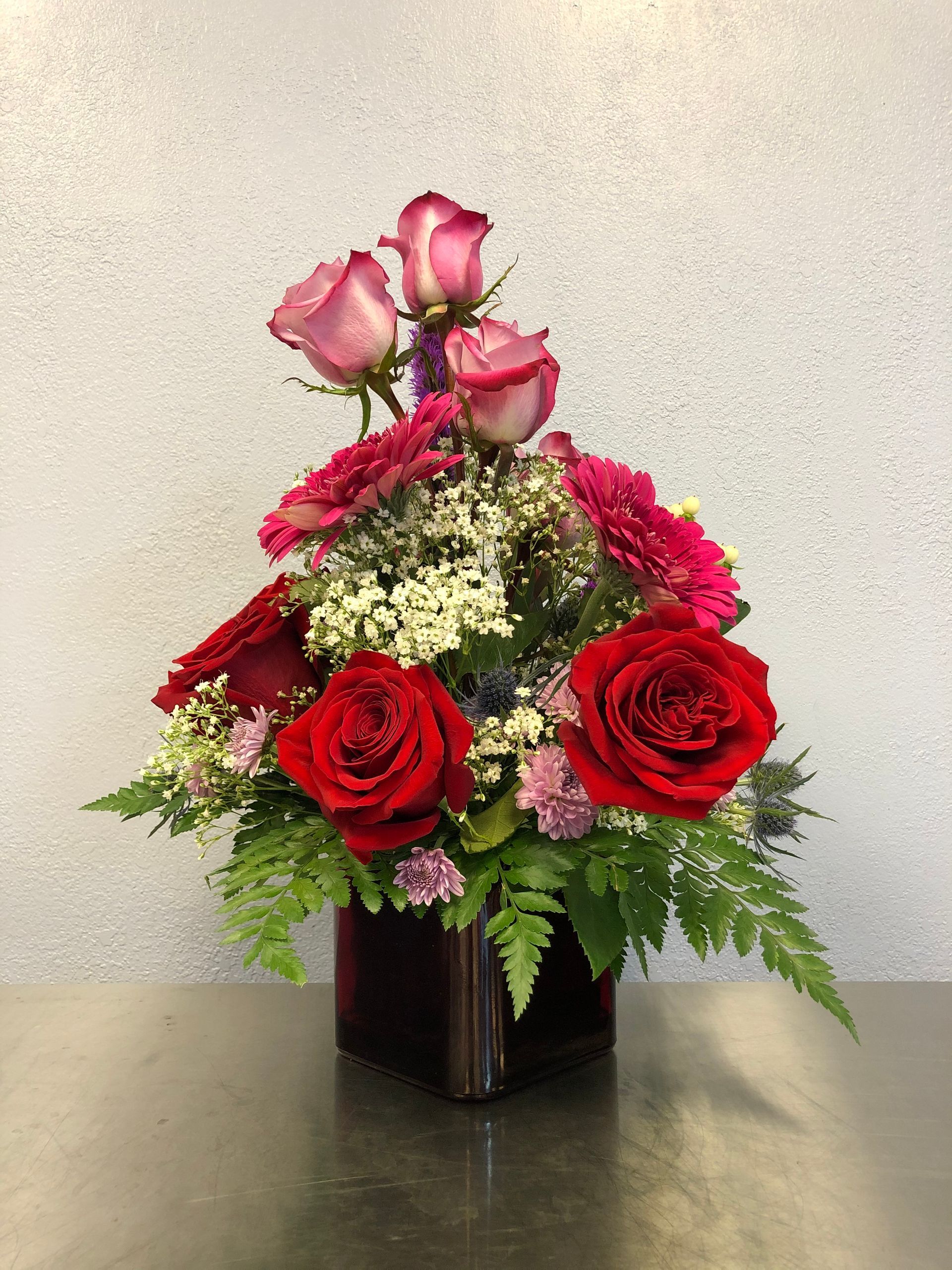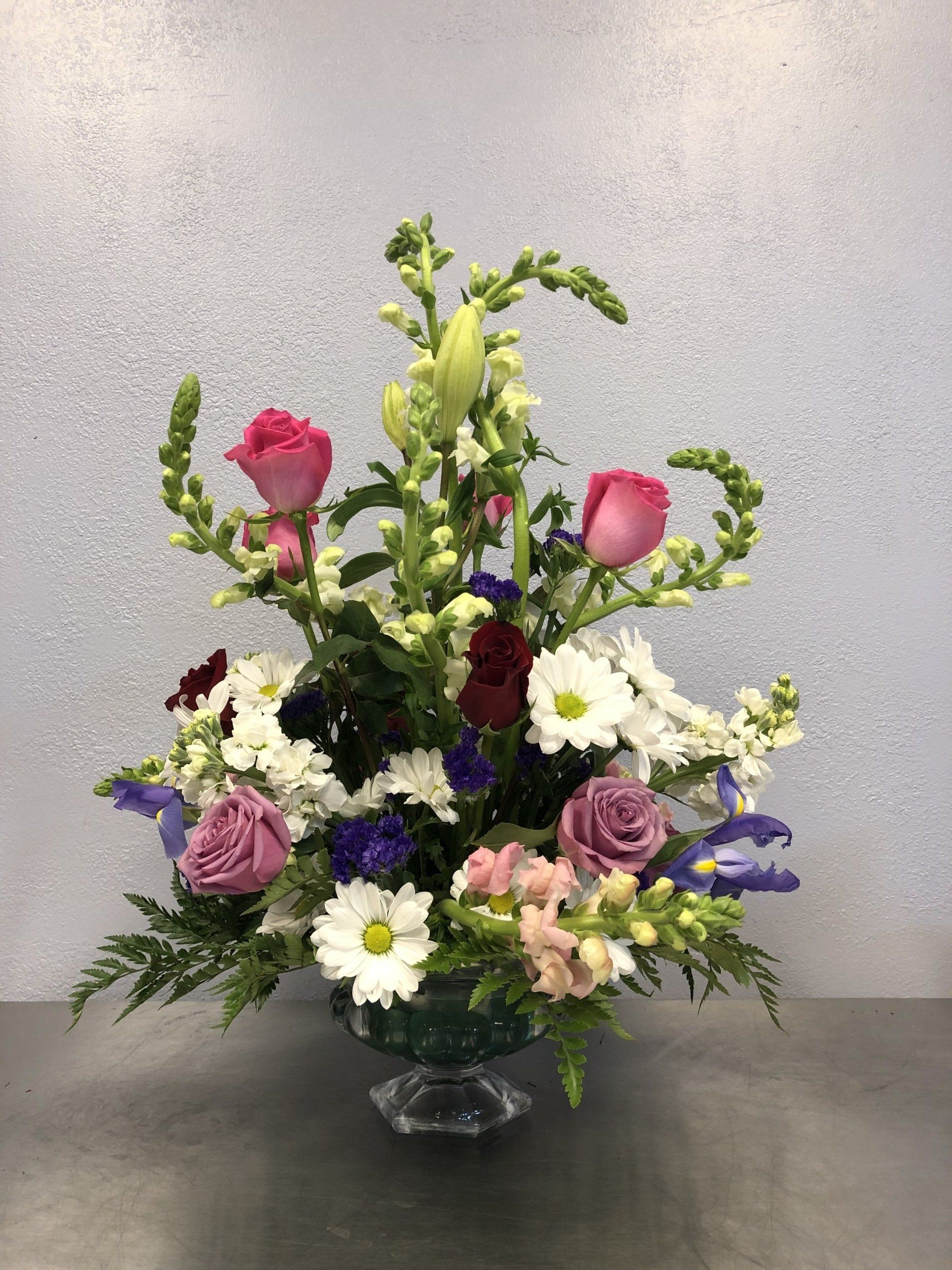 One dozen mixed roses in a crystal vase. Rose color & vase are special order.