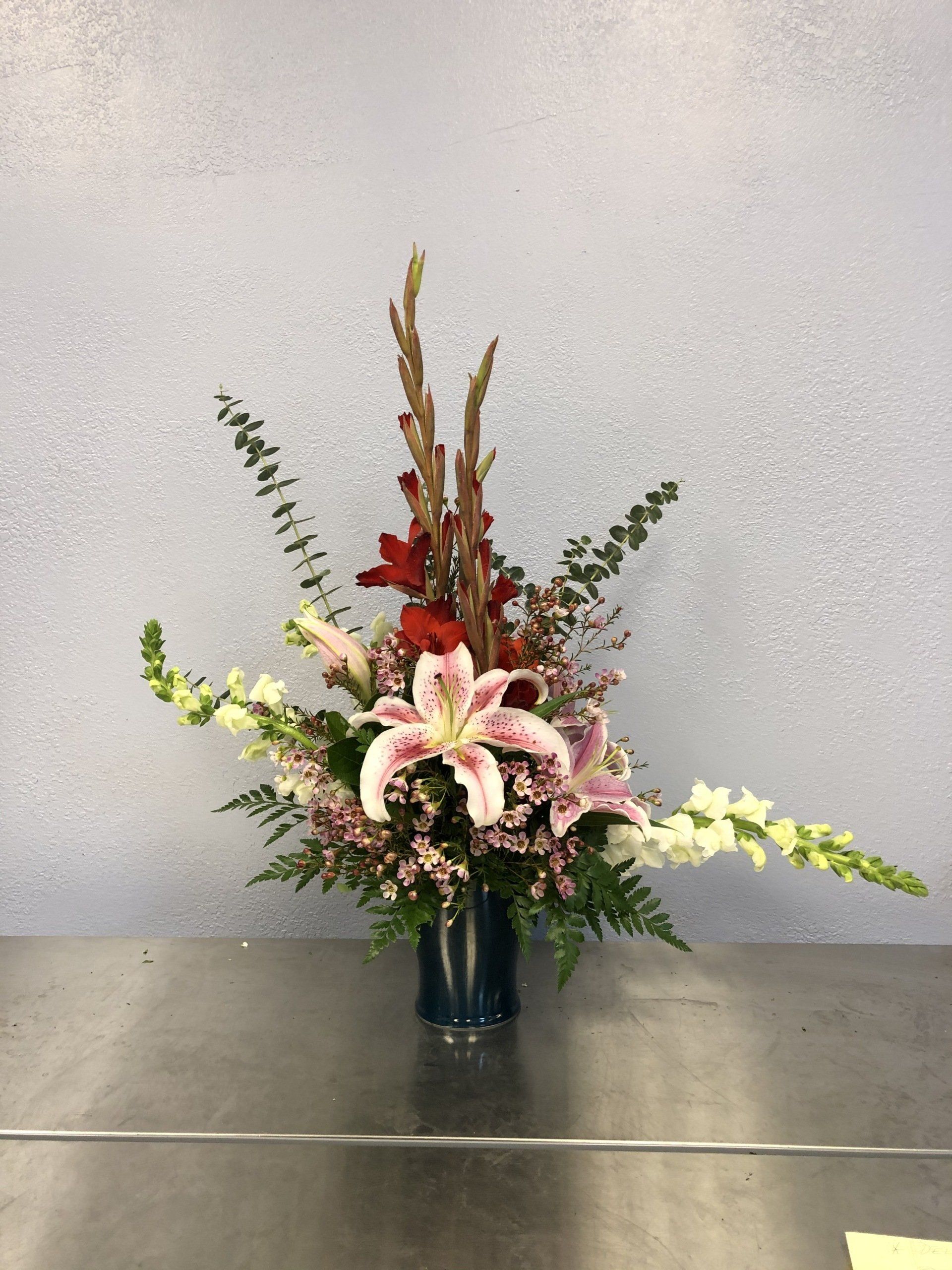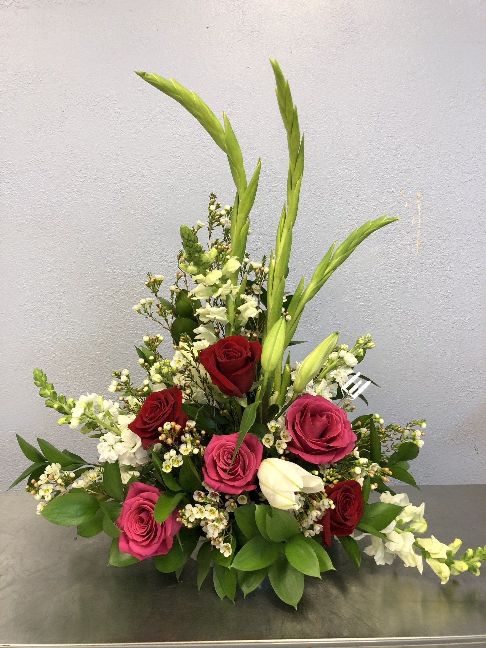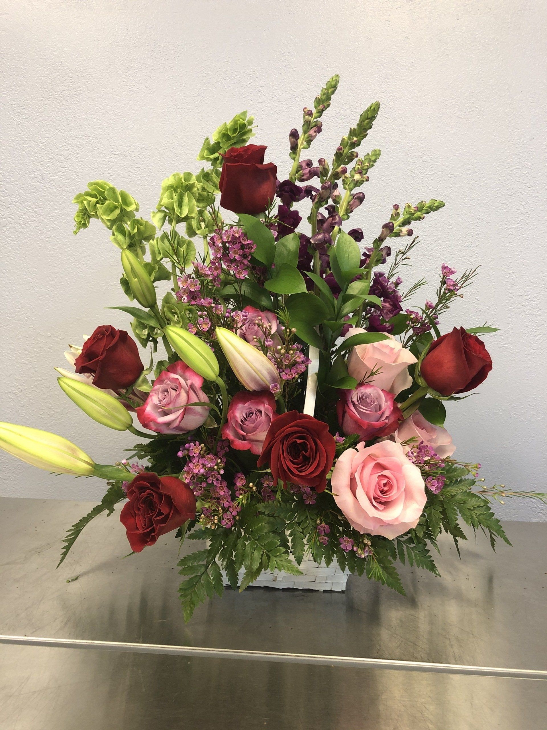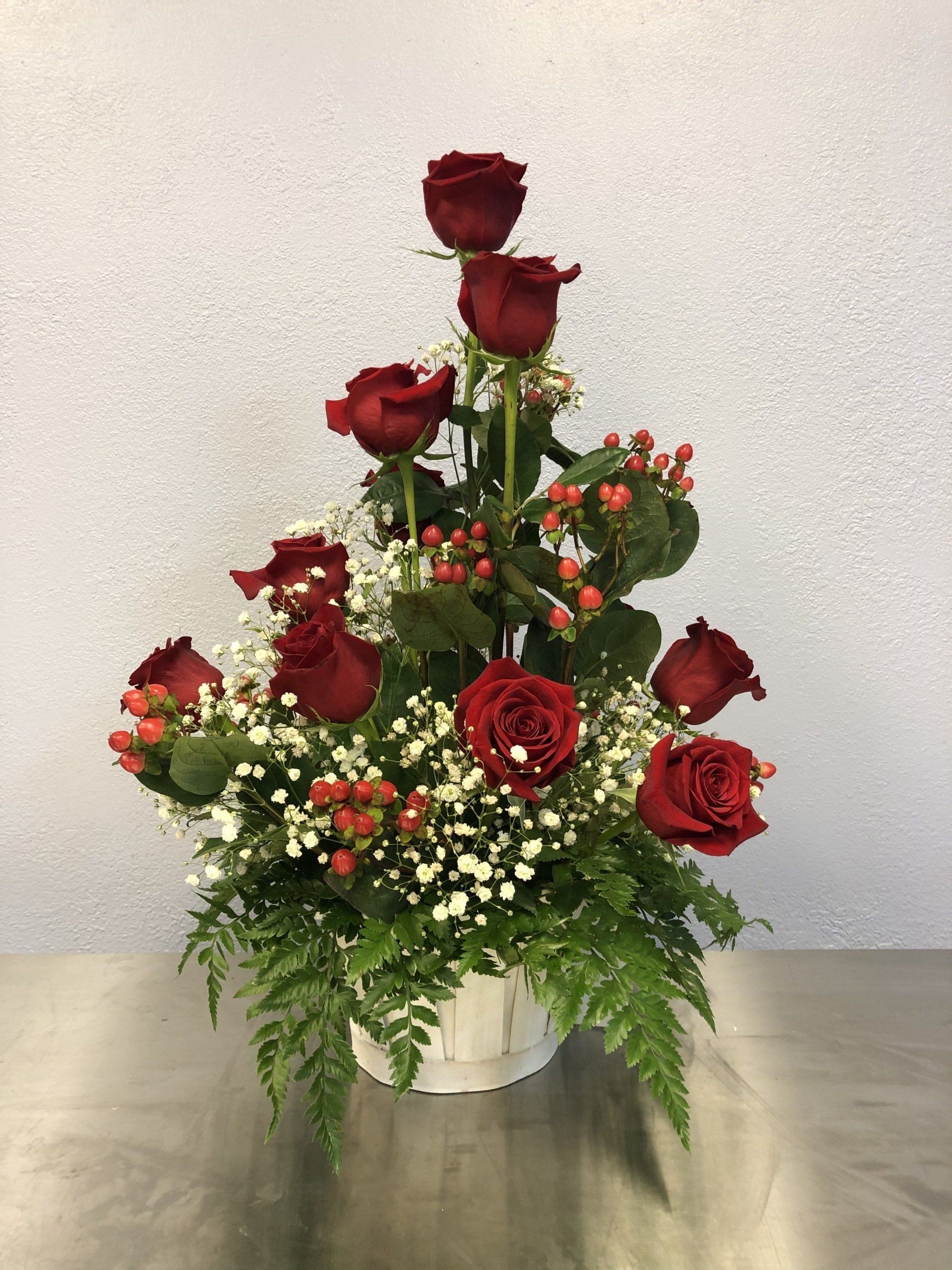 One dozen mixed roses in a crystal vase. Rose color & vase are special order.