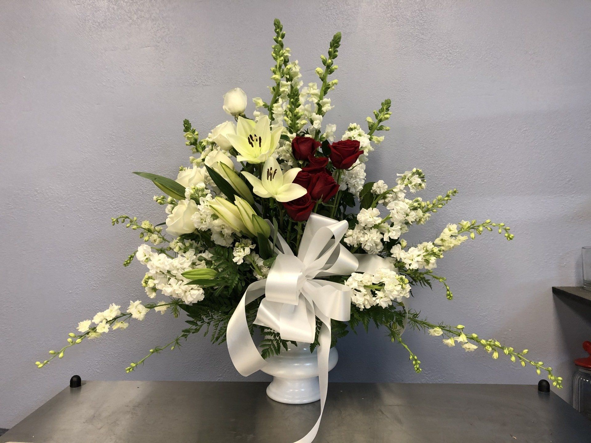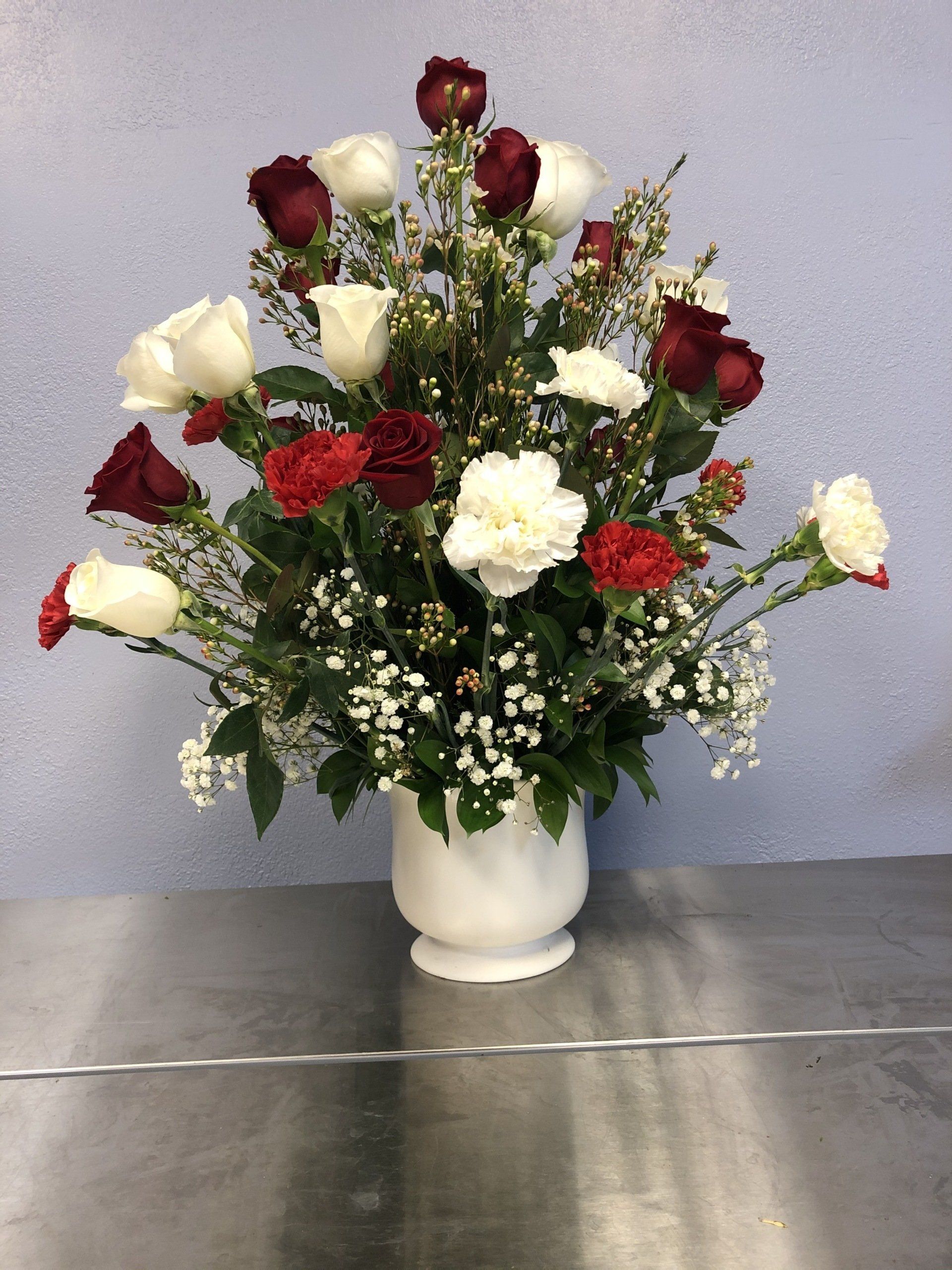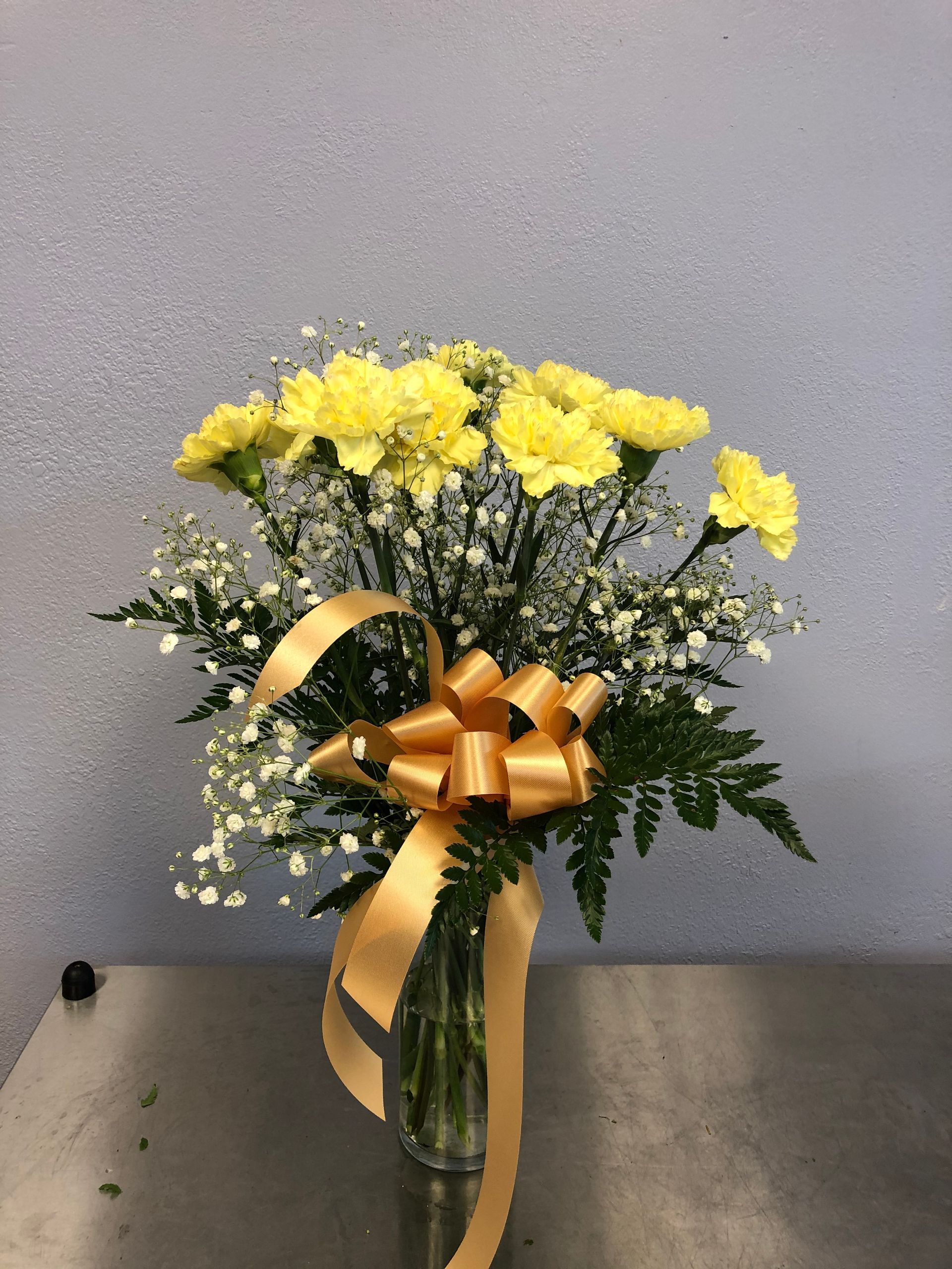 One dozen Carnations in a vase. This item does not qualify for delivery by itself. Color is optional by availability.